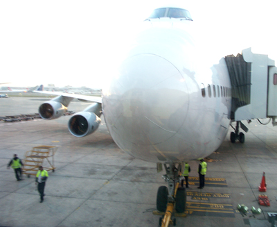 Heute dagegen fliegt man mit solchen Ungetümen durch die Höhenluft, durchreist in 19 Stunden Flug Deutschland, Polen, die Ukraine, Georgien, Tschetschenien, Afghanistan, den Hindukusch, Indien, Thailand, Malaysia, Singapur und Indonesien - ohne auch nur etwas von diesen Ländern zu sehen. Die Zeit schlägt den Raum tot und du sitzt eingepfercht zwischen 400 anderen Menschen.